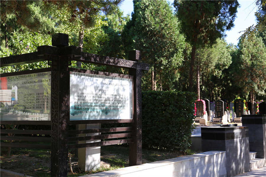 北京市八宝山人民公墓位于北京市石景山区八宝山革命公墓院内,八宝山原名黑山,主要是由东西两座山峰构成的,海拔103米,是西山山前岗阜。全山东西长约1.2公里,南北宽约 0.6公里。八宝山历史名胜颇多,明代时有延寿寺、灵福寺、朝阳庵,西峰上建有娘娘庙,其中较著名的还是褒忠护国寺。褒忠护国寺又名黑山护国寺,是明代永乐年间为纪念名将刚炳所建,寺内有刚炳墓,现仅存墓碑和墓前石龟。日本侵华时期侵略者为纪念死难的日军于山上建忠灵塔,1946年改建为忠烈祠,纪念抗战中牺牲的国民党官兵,包括张自忠、佟麟阁、赵登禹等38位将领。建国后陆续于山上建八宝山革命公墓、八宝山人民公墓和北京西郊殡仪馆。
